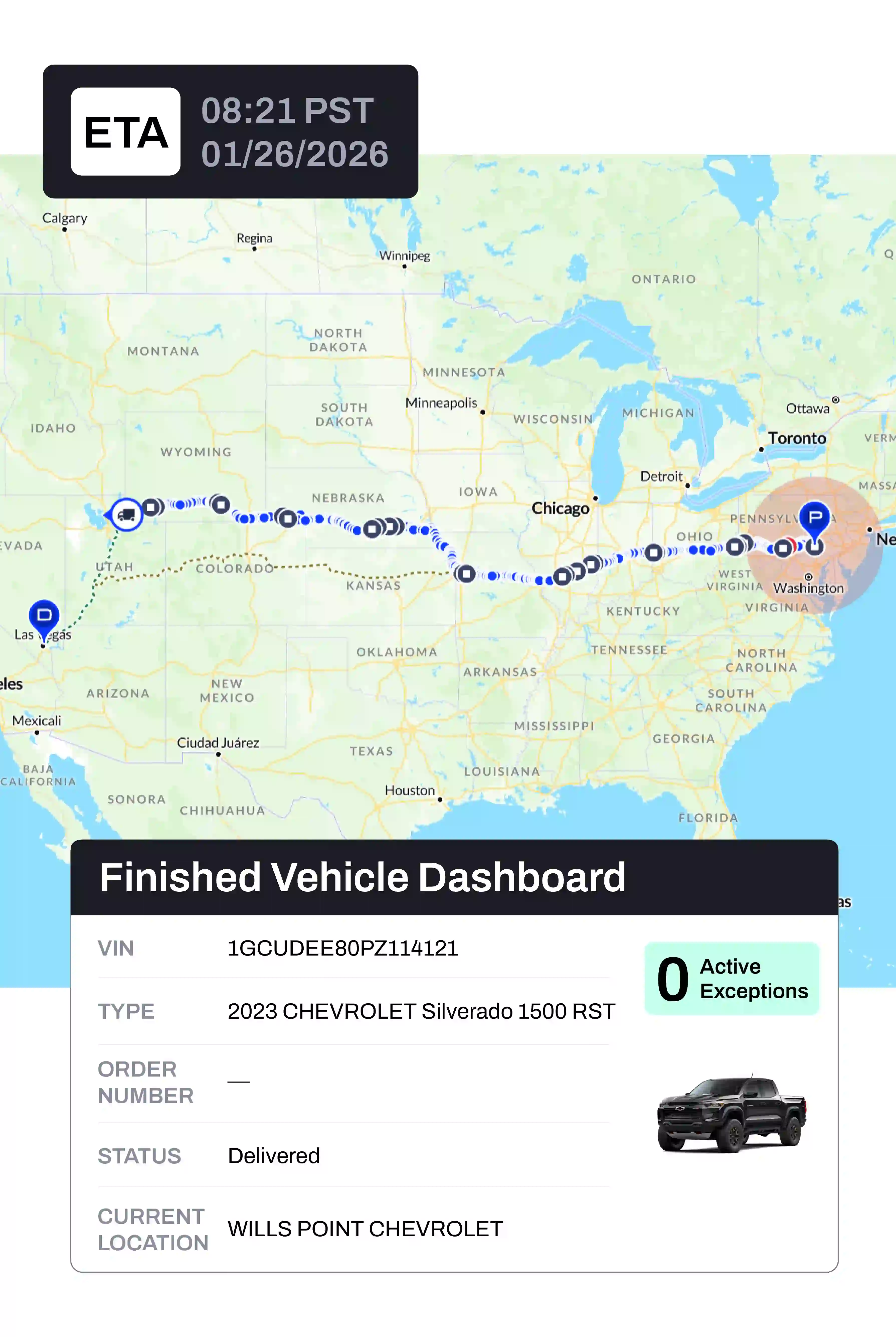 Os ETAs preditivos criados especificamente para peças automotivas e veículos acabados reduzem as suposições, melhoram a comunicação com os revendedores e dão confiança e controle a todos os envolvidos.