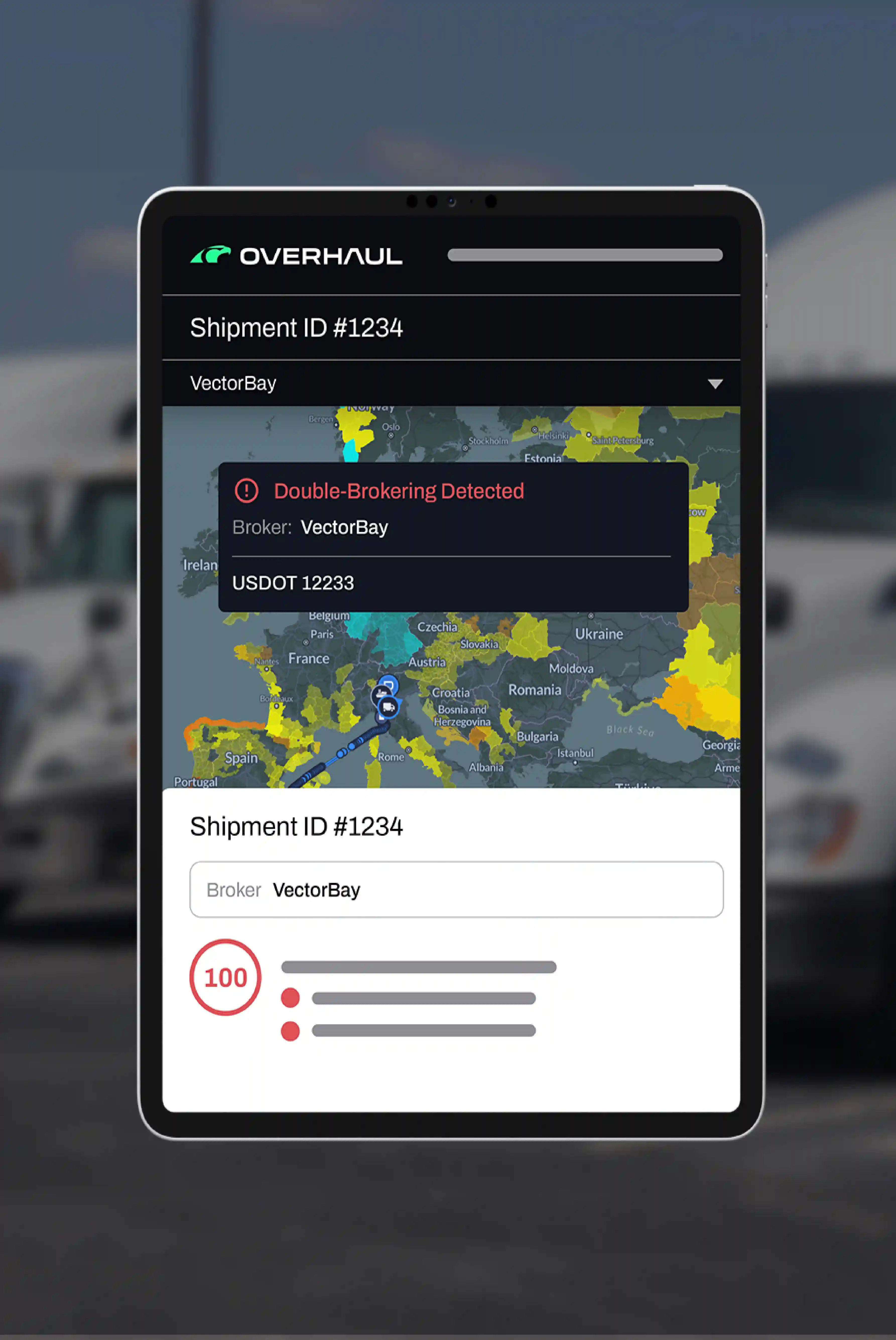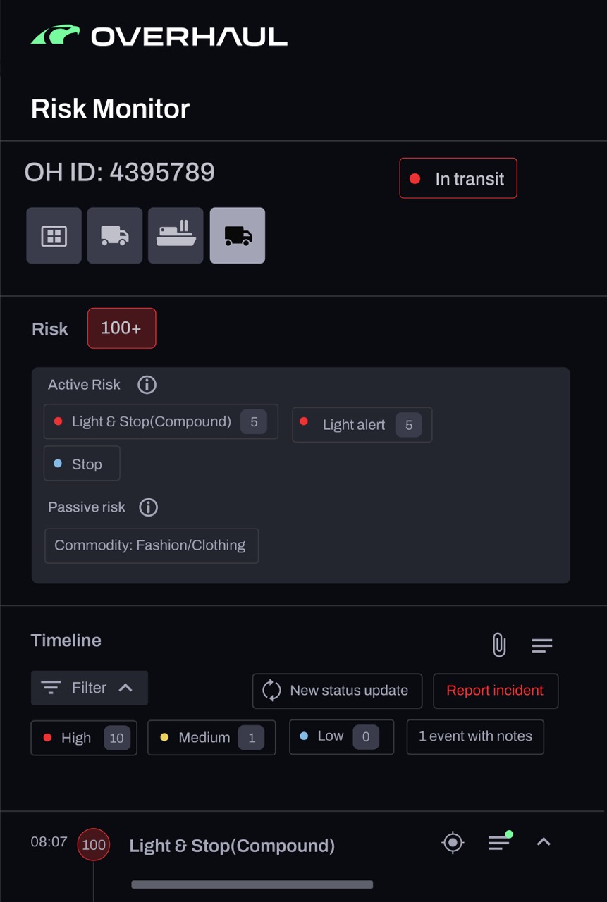 A tecnologia de ponta da Overhaul protege sua própria tecnologia contra perdas e danos, garantindo que suas remessas cheguem com segurança e dentro do prazo.